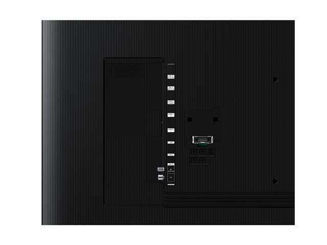 | Kommersiella funktioner | Tizen Enterprise Platform, TEP API, Samsung LYNK Cloud, Hospitality Plug & Play (Easy Set-up), Power On Mode, Hotel Channel List, kanalmenysdisplay, blandad kanallista, My Channel, Energisparläge (BLU-kontroll), RJ-12/IR pass through, multikod-IR, USB-kloning, Wake Up Alarm, Samsung LYNK DRM, Security Mode |