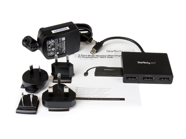 StarTech.com 3-ports multi-bildskärmsadapter - Mini DisplayPort till DisplayPort MST-hubb - Dubbel 4K 30 Hz och 1x 1080p - Video-splitter för utökat skrivbordsläge endast i Windows stationära datorer - mDP 1.2 till 3x DP - Linjedelare för video - 3 x DisplayPort - skrivbordsmodell - AC 100/230 V - för P/N: SVA5N3NEUA