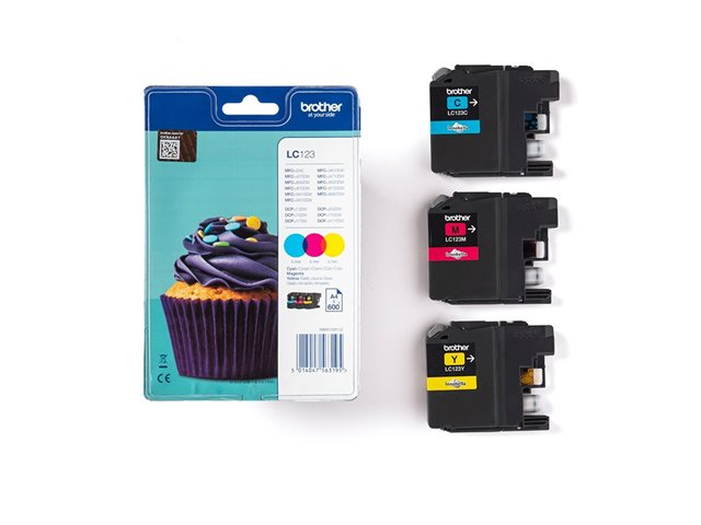 Brother LC123 RainbowPack - 3-pack - Lång livslängd - gul, cyan, magenta - original - blister med akustiskt / elektromagnetiskt alarm - bläckpatron - för Brother DCP-J132W, DCP-J172W, DCP-J4110DW, DCP-J552DW, DCP-J752DW