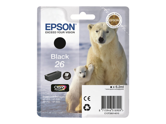Epson 26 - 6.2 ml - svart - original - bläckpatron - för Expression Premium XP-510, 520, 600, 605, 610, 615, 620, 625, 700, 710, 720, 800, 810, 820 C13T26014010