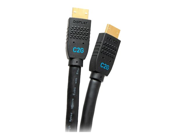 C2G 20ft Ultra Flexible 4K Active HDMI Cable Gripping 4K 60Hz - In-Wall M/M - HDMI-kabel med Ethernet - HDMI hane till HDMI hane - 6.1 m - svart - aktiv, 4K60Hz stöd C2G10381