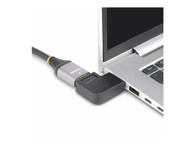 StarTech.com Right Angle HDMI 2.0 Adapter är en mångsidig lösning som är utformad för att förbättra ditt hemunderhållningssystem. Denna 90-graders HDMI-portsparare är utrustad med funktioner som säkerställer högkvalitativ ljud- och videoutmatning, inklusive 4K60Hz-stöd, HDR10 och 7.1-kanals surroundljud. Dess hållbara konstruktion, med en riv- och slitstark PVC-jacka, garanterar en livslängd på 10 000 anslutningar, vilket gör den till ett pålitligt val för dem som ofta ansluter och kopplar bort sina enheter. Adapterns guldpläterade kontakter ger en stabil och tillförlitlig anslutning, vilket minskar risken för signalförlust. Med sin rätvinkliga design är den perfekt för trånga utrymmen, vilket hjälper till att förhindra kabelbelastning och portskador. Oavsett om du vill ansluta din TV, spelkonsol eller någon annan HDMI-aktiverad enhet, erbjuder den här adaptern den funktionalitet och hållbarhet som behövs för en sömlös underhållningsupplevelse.