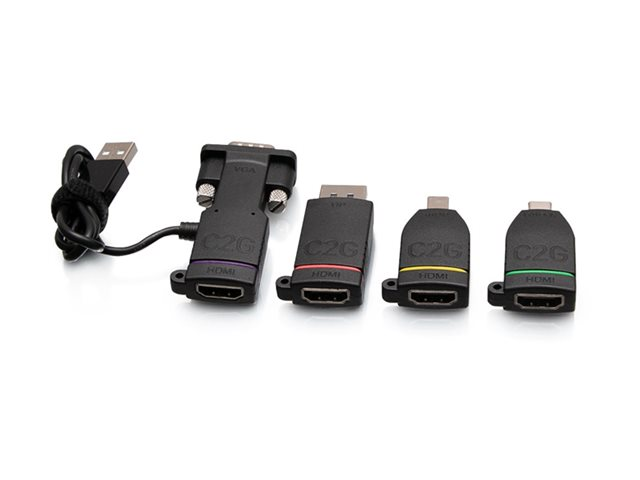 C2G Retractable Universal Mount 4K HDMI Adapter Ring with Color Coded Mini DisplayPort, DisplayPort, USB-C, and VGA - Videoadaptersats - svart - stöd för 4K C2G29892