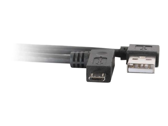C2G USB 2.0 A Right Angle to Micro-USB B Right Angle Cable - USB-kabel - mikro-USB typ B (hane) till USB (hane) - 3 m - 90° anslutning, högervinklad kontakt - svart