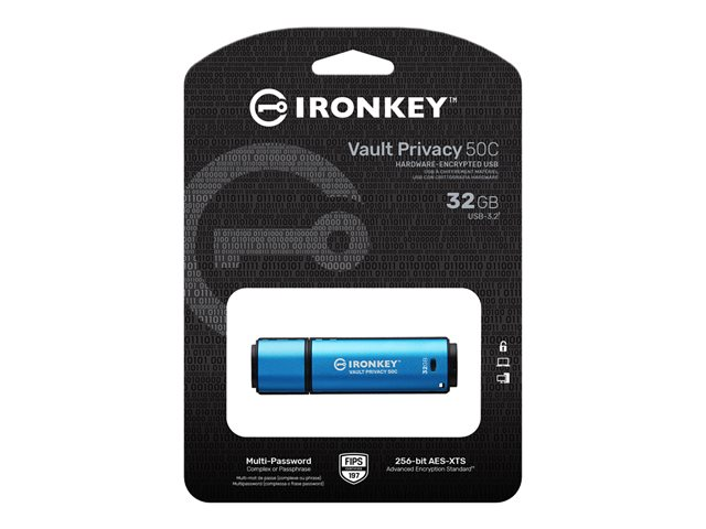 Kingston IronKey Vault Privacy 50C - USB flash-enhet - krypterat - 32 GB - USB-C 3.2 Gen 1 - TAA-kompatibel