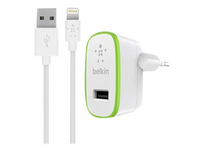 Belkin BOOST UP Home Charger+Cable - Strömadapter - 12 Watt - 2.4 A (USB) - på kabel: Lightning - vit F8J125VF04-WHT