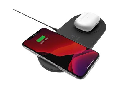 Belkin BoostCharge Dual - Trådlös laddningsplatta + växelströmsadapter - 15 Watt - svart - för Apple iPhone 11, 11 Pro, 11 Pro Max, 8, 8 Plus, X, XR, XS, XS Max; Samsung Galaxy Note10, Note10+, S10, S10+, S10e WIZ008VFBK
