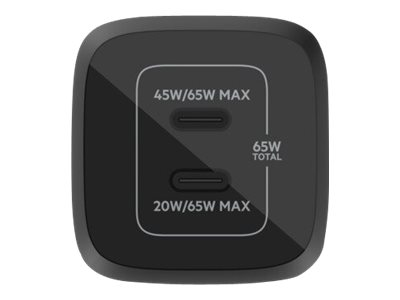 Belkin BoostCharge Pro - Strömadapter - PPS-teknik - 65 Watt - 3.25 A - PD 3.0, Fast Charge - 2 utdatakontakter (USB-C) - svart WCH013VFBK