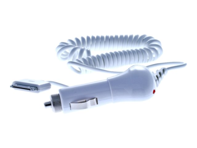 Insmat - Strömadapter för bil - 1 A (30-pin dockningsanslutning) - på kabel: 30-pin Apple - vit 520-8801