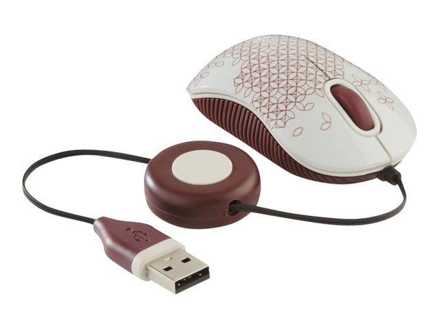Targus Compact Laptop - Mus - höger- och vänsterhänta - optisk - 3 knappar - kabelansluten - USB - vit, röd