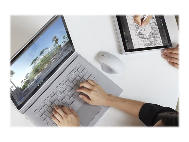 Microsoft Surface Precision Mouse - Mus - ergonomisk - högerhänt - optisk - 6 knappar - trådlös, kabelansluten - USB, Bluetooth 4.2 LE - grå - kommersiell