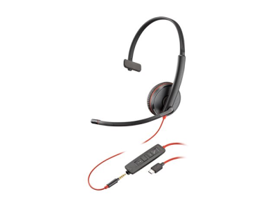 HP Poly Blackwire C3215 - Blackwire 3200 Series - headset - på örat - kabelansluten - USB-C, 3,5 mm kontakt - svart - Certifierad för Skype for Buisness, Cisco Jabber-certifierad, Avaya-certifierad