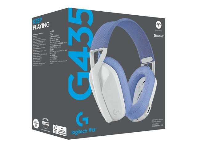 Logitech Lightspeed G435 - Headset - fullstorlek - Bluetooth/radiofrekvens 2,4 GHz - trådlös - vit - Discord-certifierad