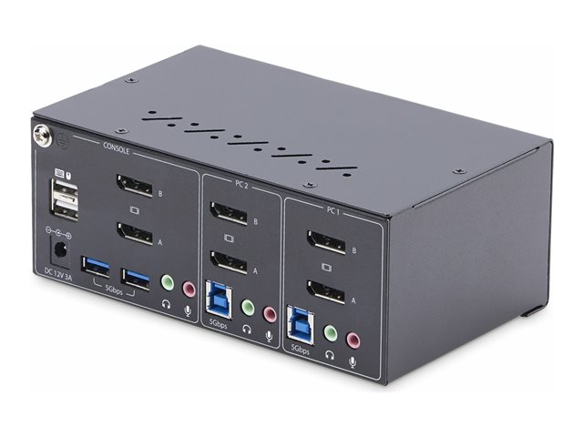 StarTech.com 2-Port Dual-Monitor DisplayPort KVM Switch, 4K 60Hz, 2x USB 5Gbps Hub Ports, 2x USB 2.0 HID Ports, Hotkey and Push-Button Switching, TAA Compliant - ESD Level 3 Protection (P2DD46A2-KVM-SWITCH) - Omkopplare för tangentbord/video/mus/ljud/USB - 2 x KVM/ljud/USB - 1 lokal användare - skrivbordsmodell - TAA-kompatibel
