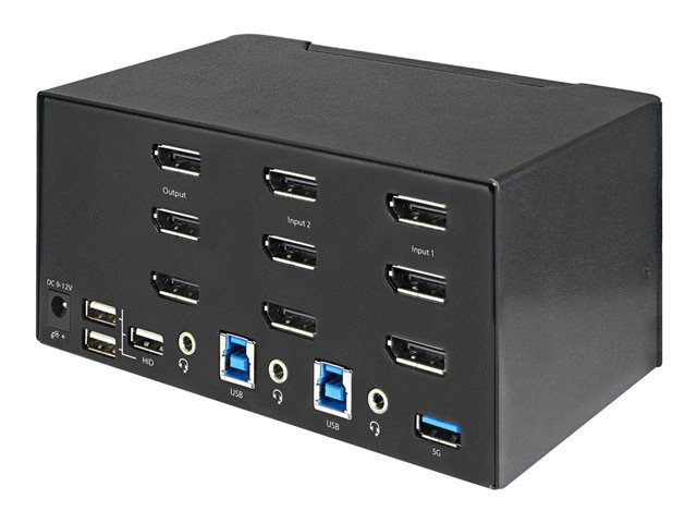 StarTech.com 2-ports DisplayPort KVM-switch för tre skärmar - 4K 60 Hz UHD HDR - Desktop DP 1.2 KVM med 2 portar USB 3.0-hubb (5 Gbit/s) och 4x USB 2.0 HID-portar, ljud - Snabbtangenter för omkoppling - TAA - Omkopplare för tangentbord/video/mus/ljud - 2 x KVM/ljud - skrivbordsmodell - TAA-kompatibel SV231TDPU34K