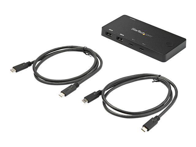 Med denna USB-C KVM med 2 portar kan du enkelt växla mellan två USB Type-C eller Thunderbolt 3-stationära datorer eller bärbara datorer med hjälp av ett enda tangentbord, HDMI -skärm och mus.Enkelt att installera och användaOm man använder USB-C med DP alt-mode, behöver man bara ansluta en enda kabel till varje dator med den här kompakta KVM-switchen, vilket gör att man sparar utrymme med ett begränsat krav på kablar. Alla kablar som krävs för att ansluta datorerna följer med, så att du kan genomföra installationen direkt efter uppackningen utan något krångel.För att underlätta användningen har KVM utrustats med en knapp som används för att växla mellan de anslutna datorerna.Stöder 4K 60 Hz-upplösningarUSB-C KVM-switchen stöder upplösningar på upp till 4K (3 840 x 2 160) vid 60 Hz och kan enkelt driva en stor HDMI 2.0-skärm för maximal visningsyta.Kompakt och bärbarFörutom USB-C-utförandet för lägsta möjliga kabelkrav är KVM bussdriven, så att man i ännu högre grad slipper trassel då man inte behöver använda en otymplig strömadapter. Tack vare den lätta och lilla formfaktorn är det enkelt att använda den här mini-KVM-switchen som är idealisk för mobil personal.Garanterad kompabilitetKVM är OS-oberoende vilket betyder att den kan användas tillsammans med alla operativsystem inklusive Windows, Linux, macOS, iPadOS (Apple iPad Pro) och Android. Den här produkten har genomgått hårda tester hos StarTech.com för att säkerställa att den är kompatibel med alla populära märken som: Dell, HP, Apple och Lenovo.SV211HDUC täcks av StarTech.com:s 2-årsgaranti och gratis livstidsgaranti på teknisk support.