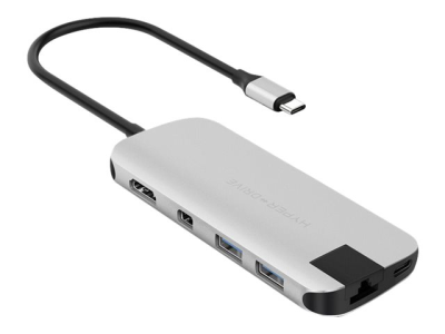 HyperDrive Slim 8-in-1 Hub - Dockningsstation - USB-C - HDMI, Mini DP - 1GbE HD247B-SILVER