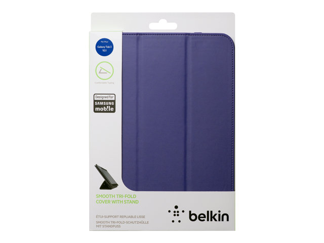 Belkin Smooth Tri-Fold Cover with Stand - Fodral för surfplatta - tyg - lila - för Samsung Galaxy Tab 3 (10.1 tum) F7P122VFC01